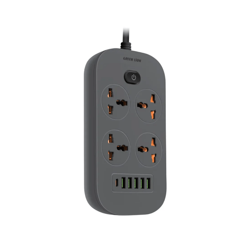 Green Lion Power Socket 5 USB — универсальный и удобный выбор для всех ваших потребностей в зарядке. Он имеет в общей сложности 4 розетки и 5 портов USB-A, а также порт Type-C для быстрой зарядки. Эта розетка имеет шнур длиной 2 метра, рассчитана на напряжение 110–240 В и мощность 2500 Вт, что делает ее подходящей для использования во многих странах. Идеально подходит для дома или путешествий, он доступен с типами вилок ЕС, Великобритании, США и Австралии.